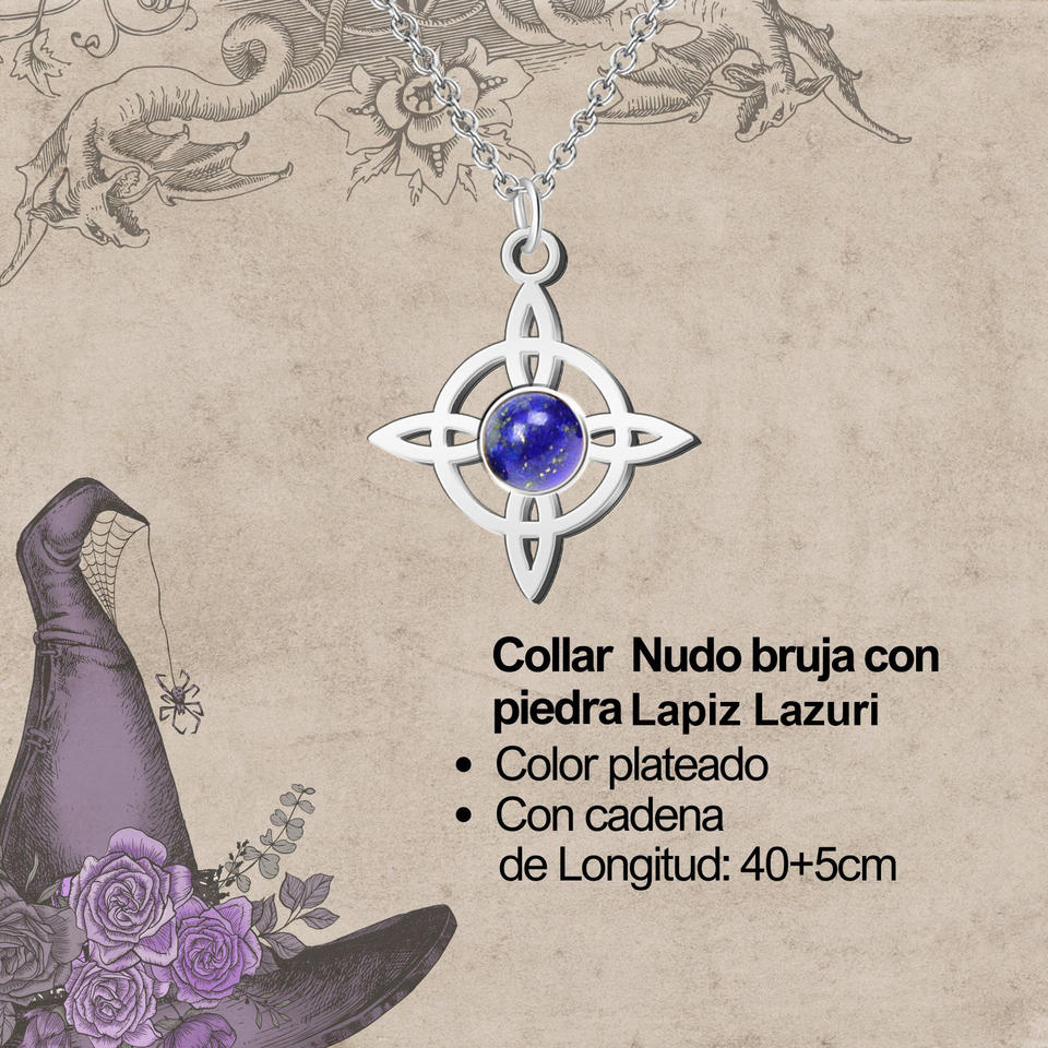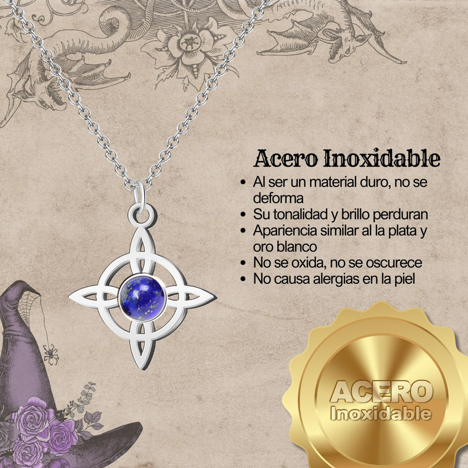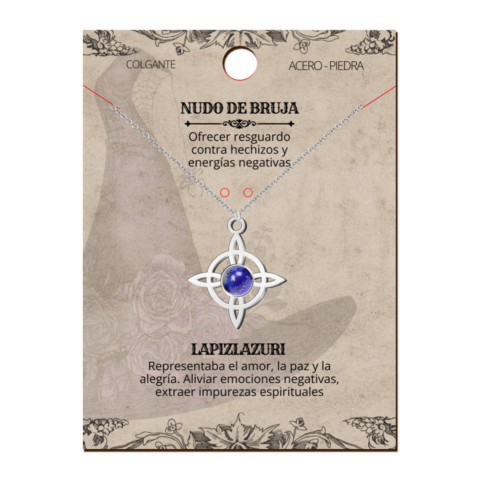 Stainless Steel Witch's Knot Pendant with Lapis Lazuli Lucky and Protection Amulet Minimalist Link Chain Unisex Necklace