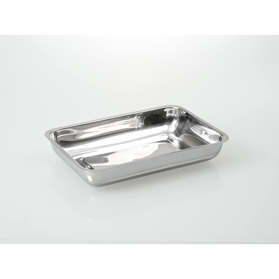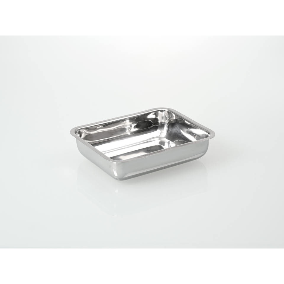 Stainless steel bowl, low form, with bottom grooves