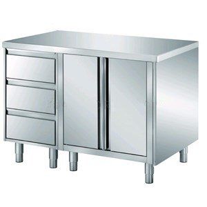 Tavolo in acciaio inossidabile con porte scorrevoli