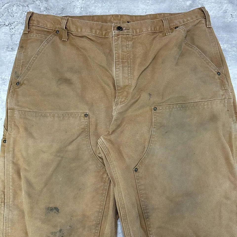 Stains Surface Double Knee Work Wear Canvas Pants 14 oz Duck Canvas Fabric Dirty Wash Trousers Outdoor Hiking Wear New Fashion