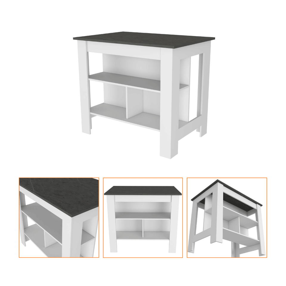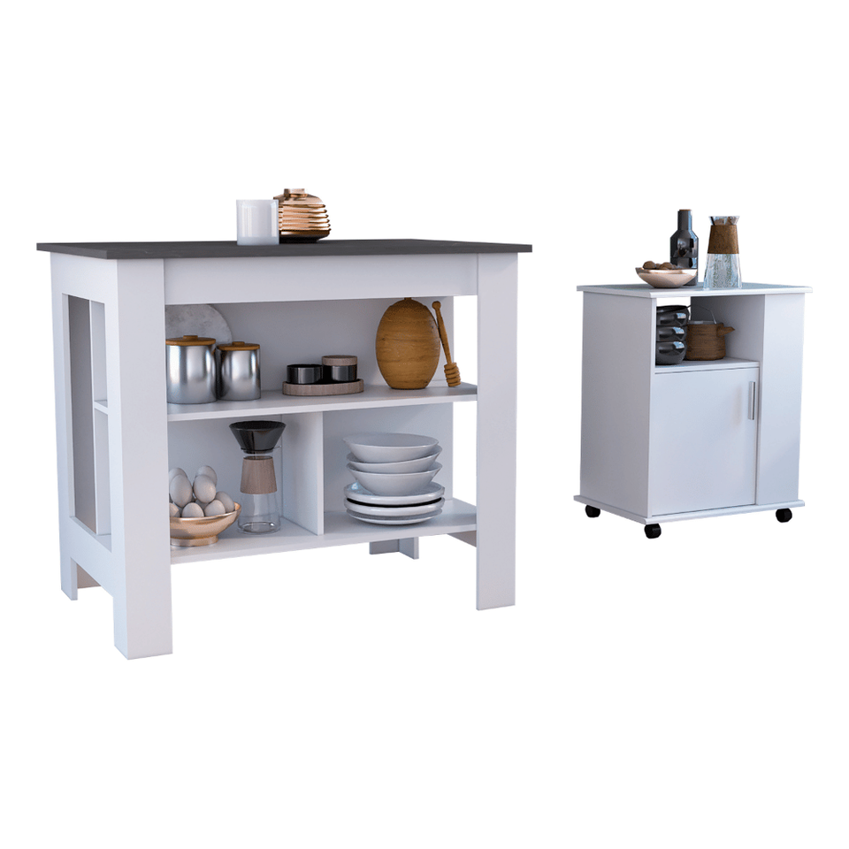 Set Cucina 2 Pezzi Stamford Bianco/Onyx: Isola Cucina Delos e Mobiletto Inferiore Munich per Microonde