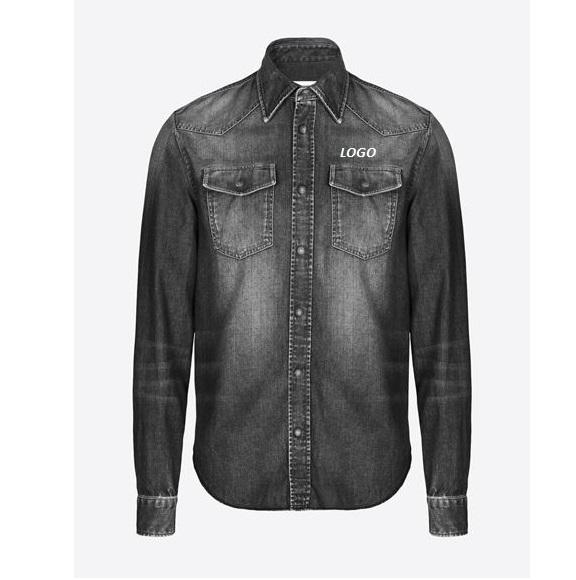 Colletto rialzato nero Vintage con stile Jeans alla moda da uomo camicia di Jeans traspirante taglie forti Casual da lavoro normale camicia da uomo