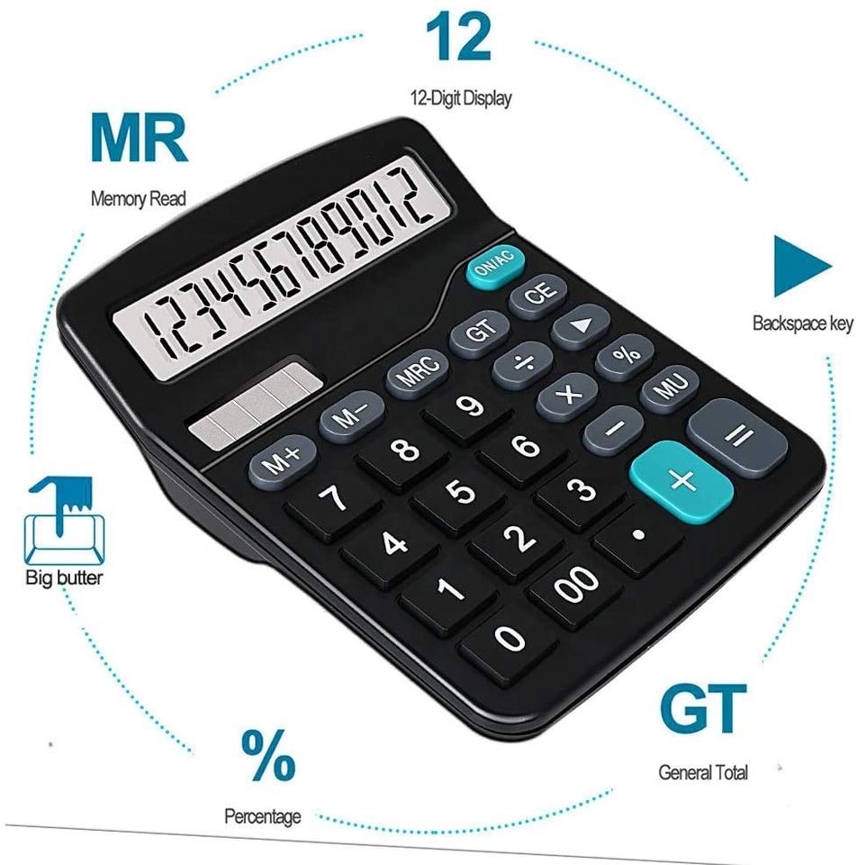 Funzione Standard Calcolatori ELETTRONICI con 12 Cifre Display Lcd di Grandi Dimensioni, Palmare Calcolatrice Da Tavolo Per Tutti I Giorni E di Base Ufficio