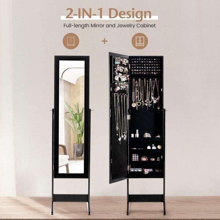 Armadietto Portagioie a Specchio con Base per Vanità da Trucco