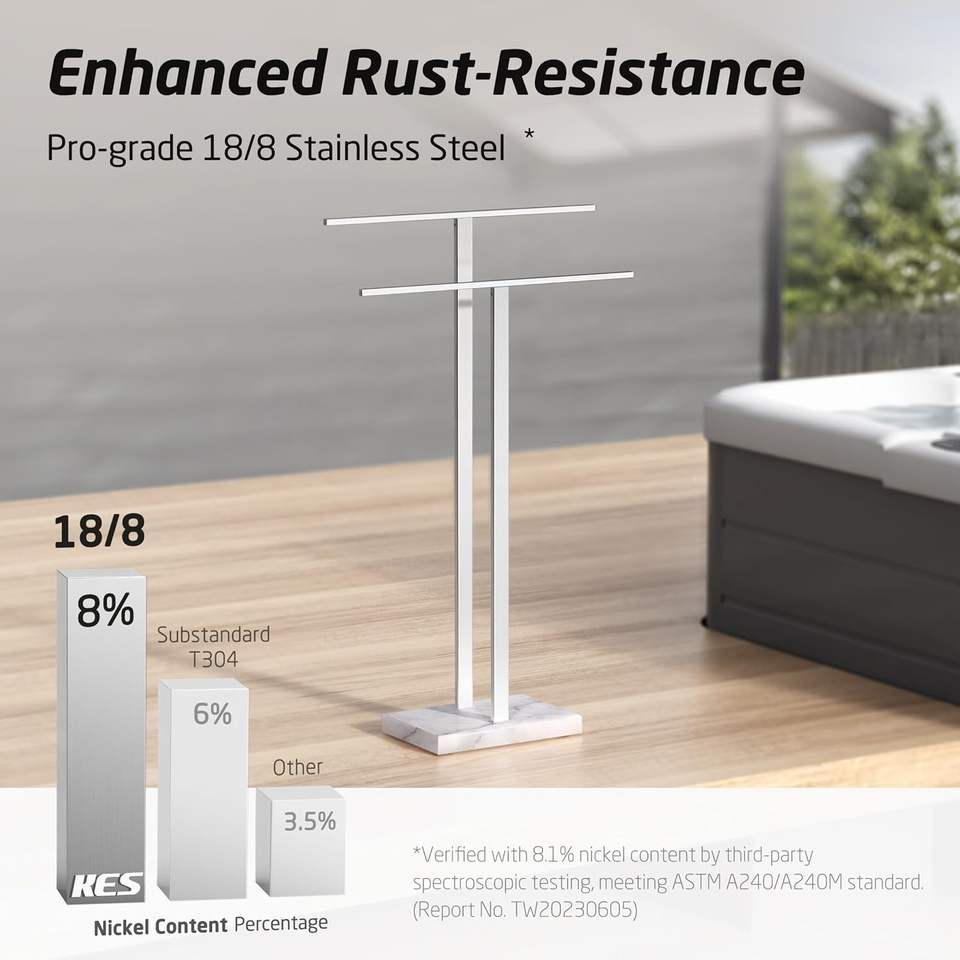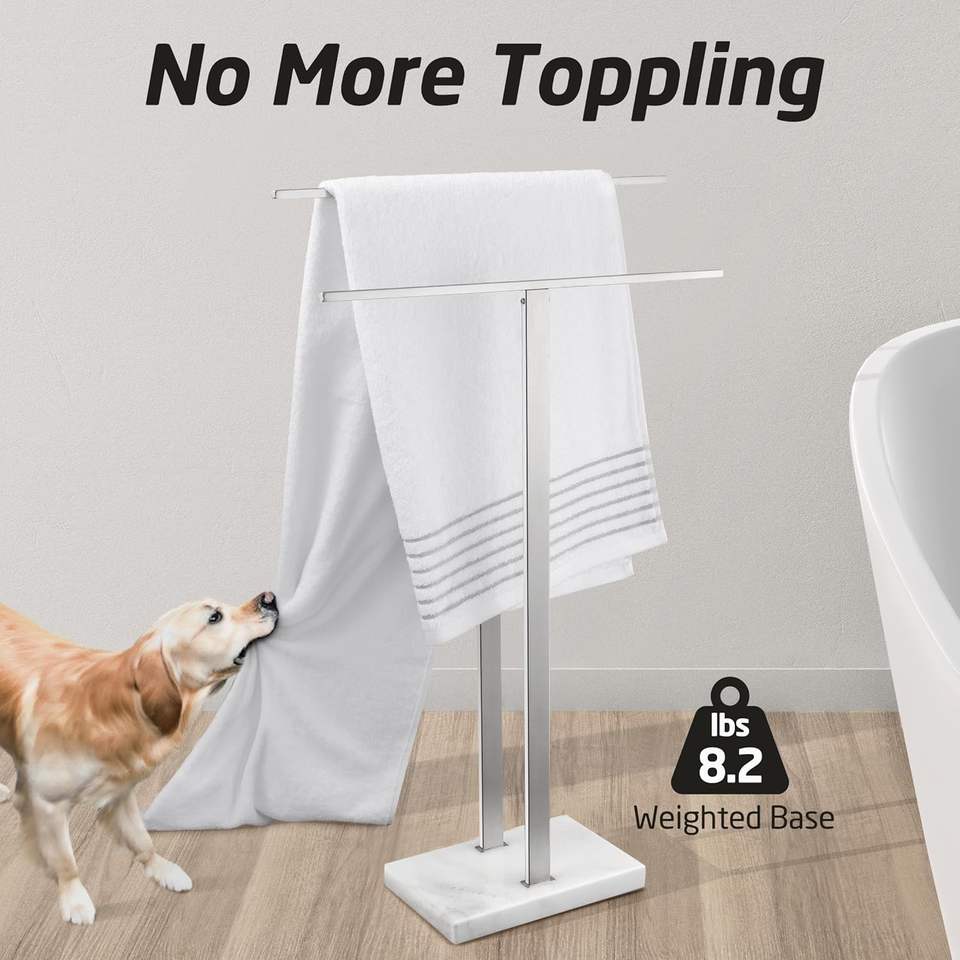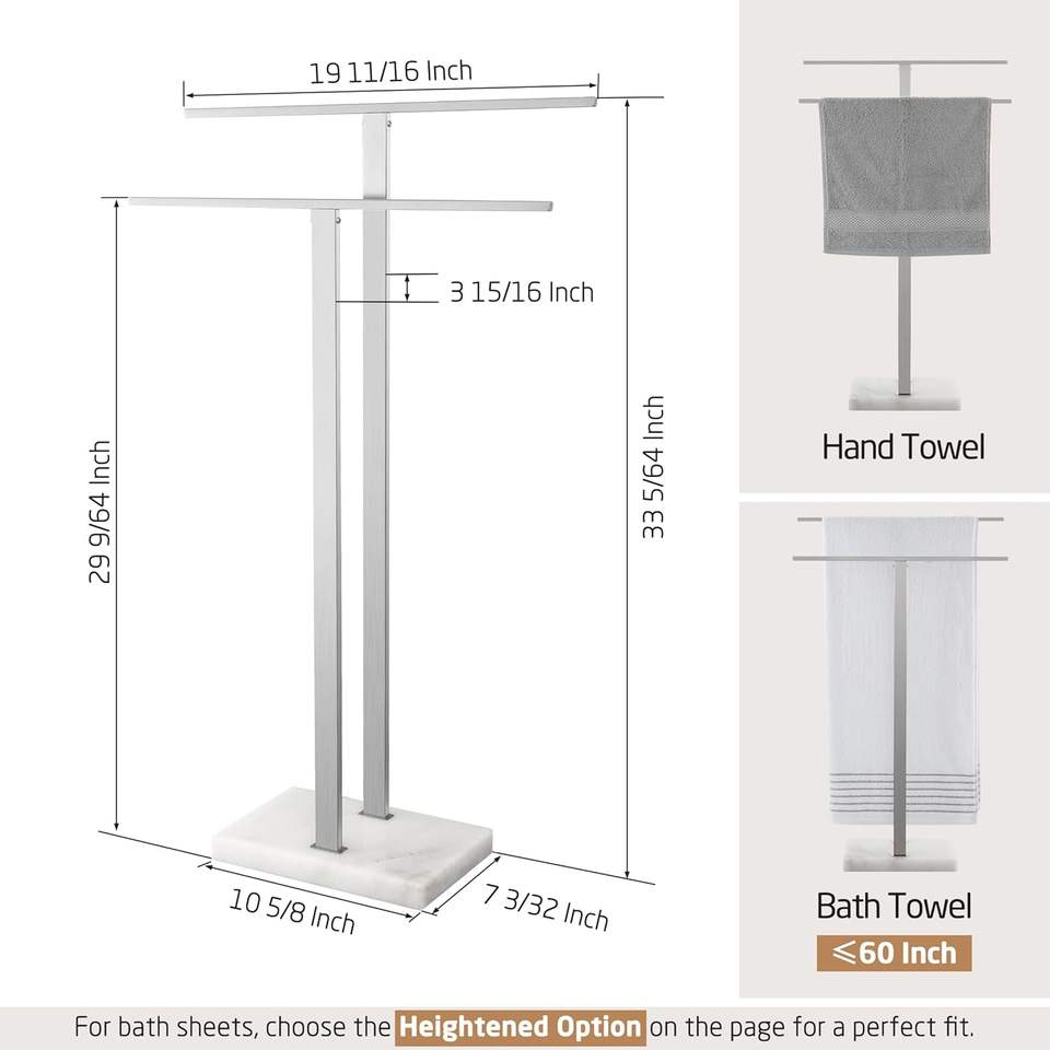 Portasciugamani a 2 livelli portasciugamani con Base in marmo per pavimento in acciaio inox con finitura spazzolata