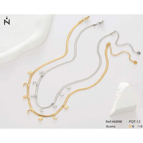 Collana Angelina con Ciondolo a Stella e Luna in Acciaio Inossidabile, Tono Oro e Argento, 60 Cm, Gioielli Unisex Casual alla Moda