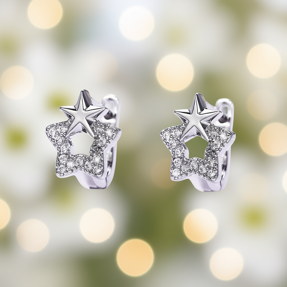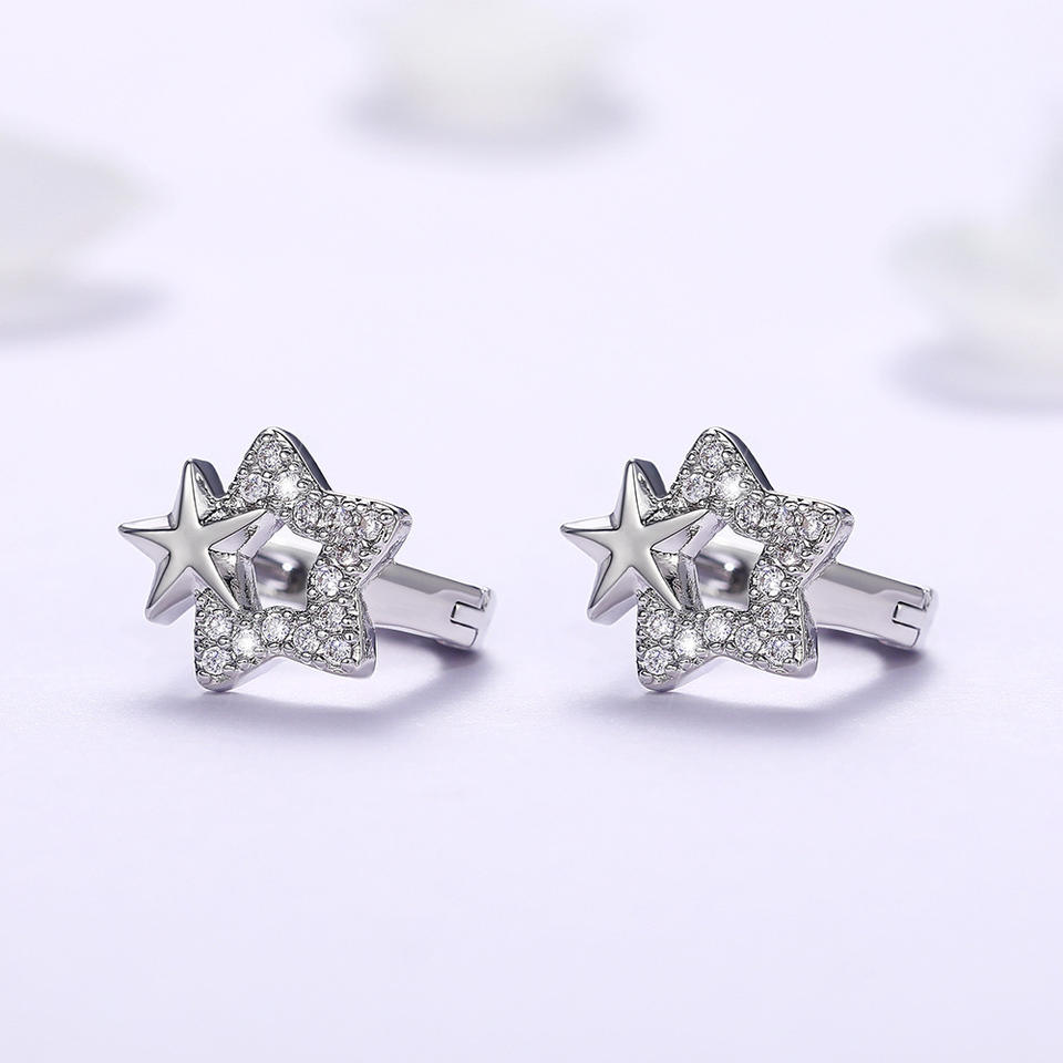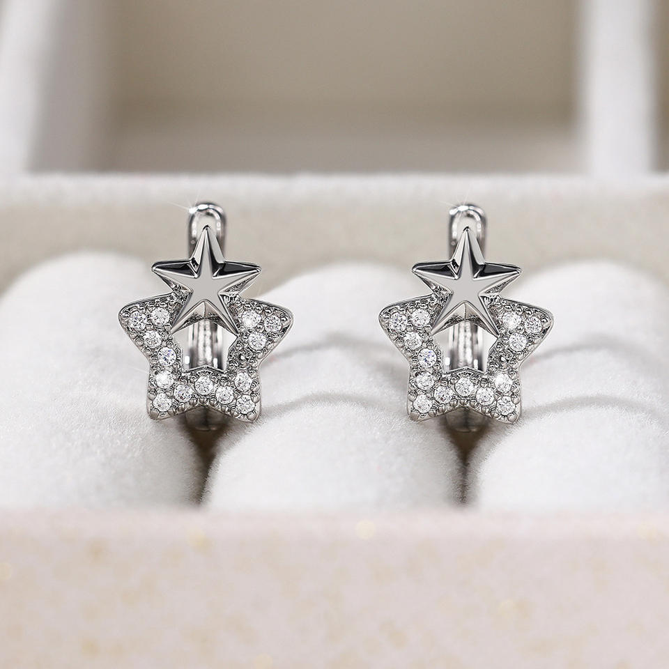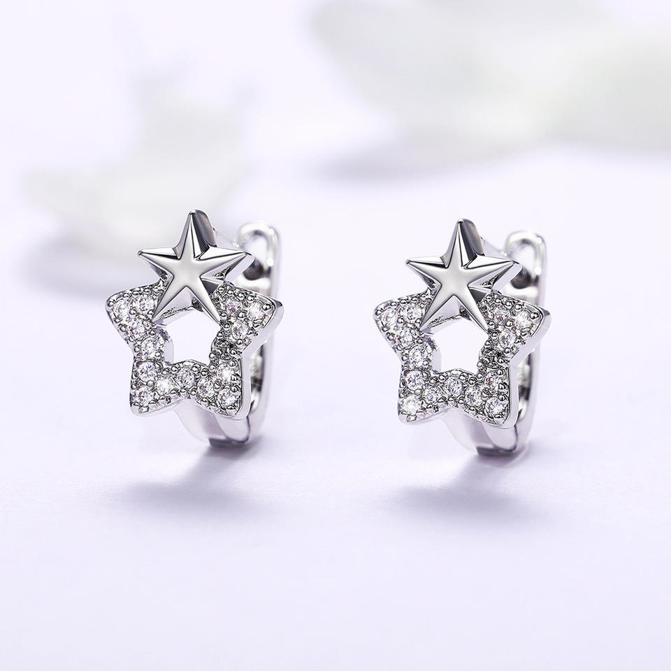 Star Crystal Stud Earrings For Women 925 Silver Rhodium Plated White Gold Color Everyday Wear Jewelry