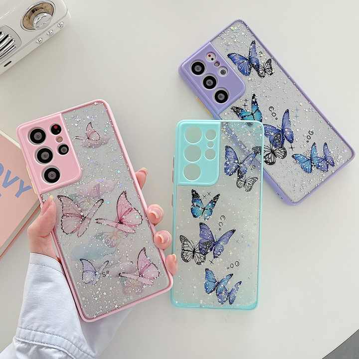 Star Epoxy Glitter Butterfly Phone Case per Samsung S23 S22 S21 Plus Ultra S20 S21 FE A13 A53 Fashion Girls custodie antiurto