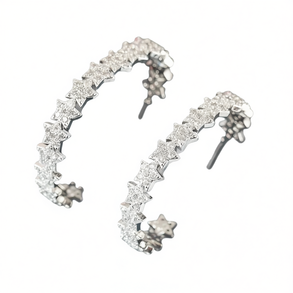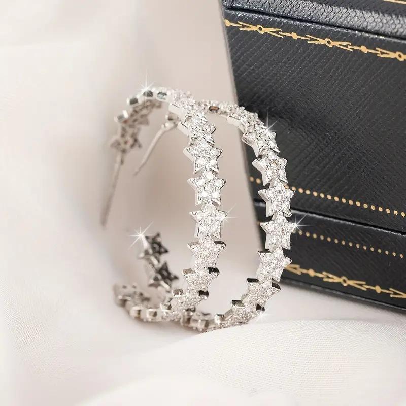 Star Huggie Earrings White Gold 925 Silver Crystal Rhinestone Micro Insert Trendy Women's Everyday Wear