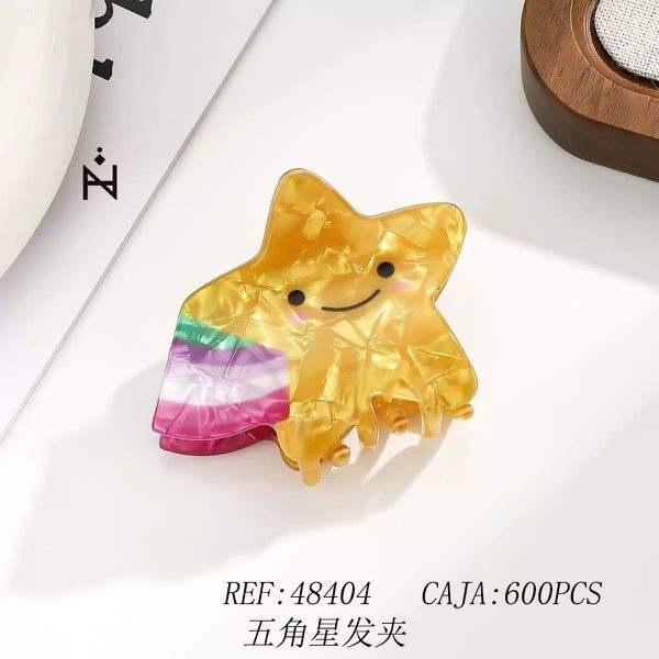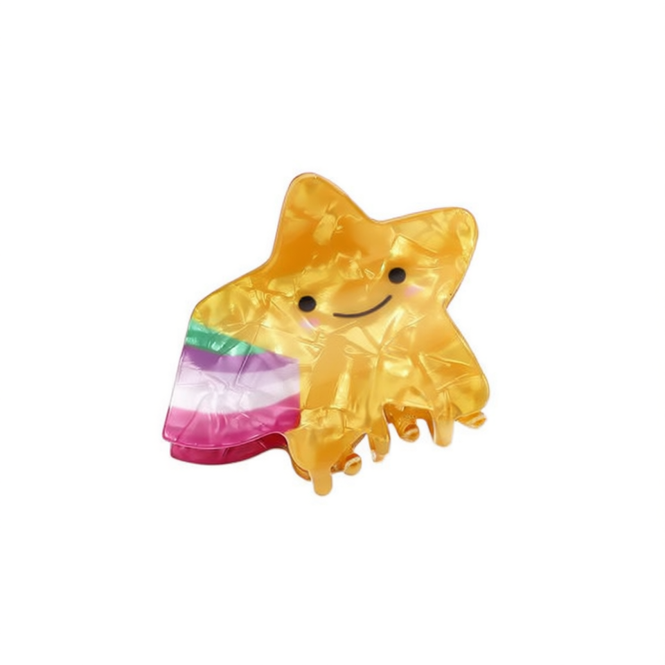 Star Shape Hair Clip Gold Rainbow Color Cute Cartoon Design For Women And Girls 12 Cm Plastic Casual Style