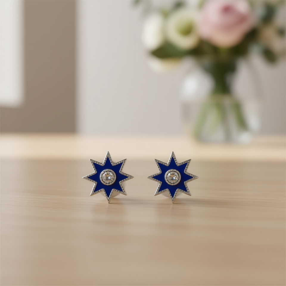 Star Stud Earrings For Women Purple Metal With White Stone Round Brilliant Cut Bezel Setting Fashion Jewelry Zinc Alloy