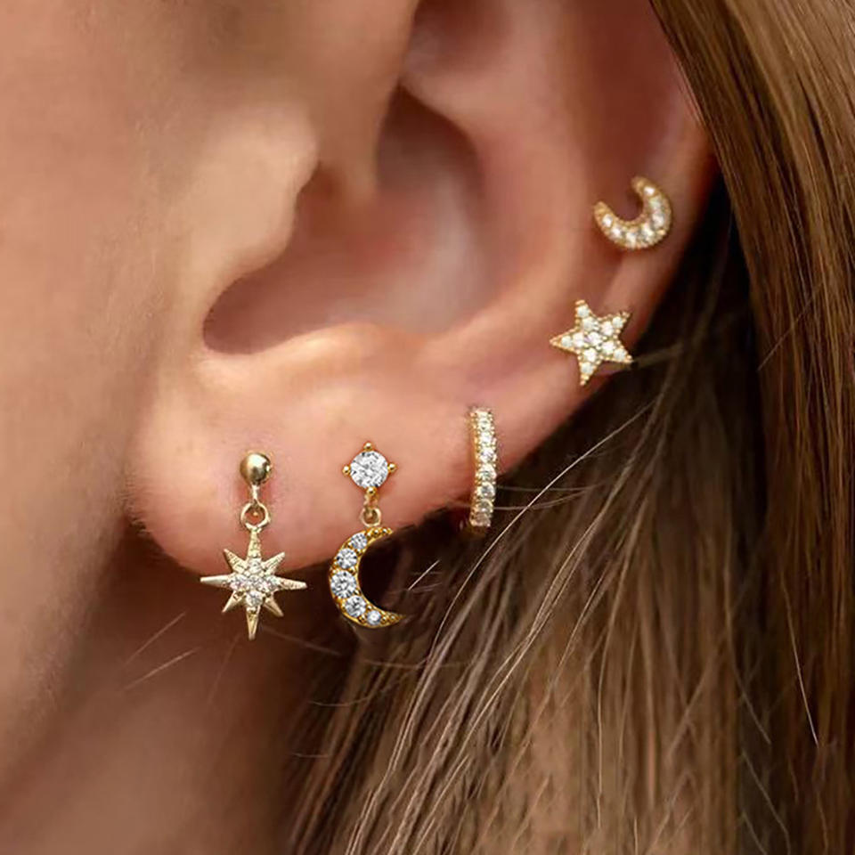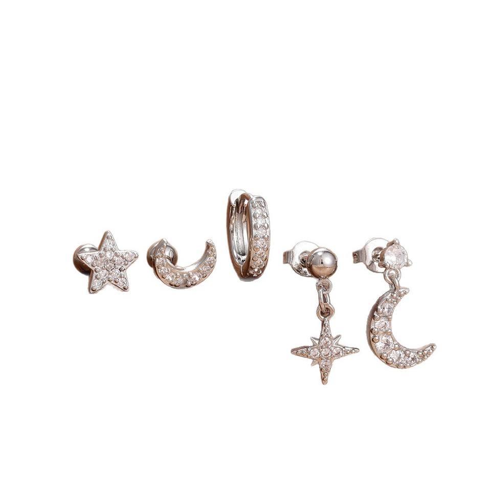 Orecchini a perno con stella e luna, stile coreano, per influencer online, semplici, freschi e versatili