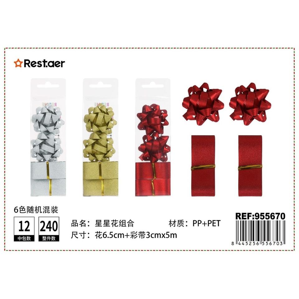 Star bow and plastic ribbon set for gifts and decorations