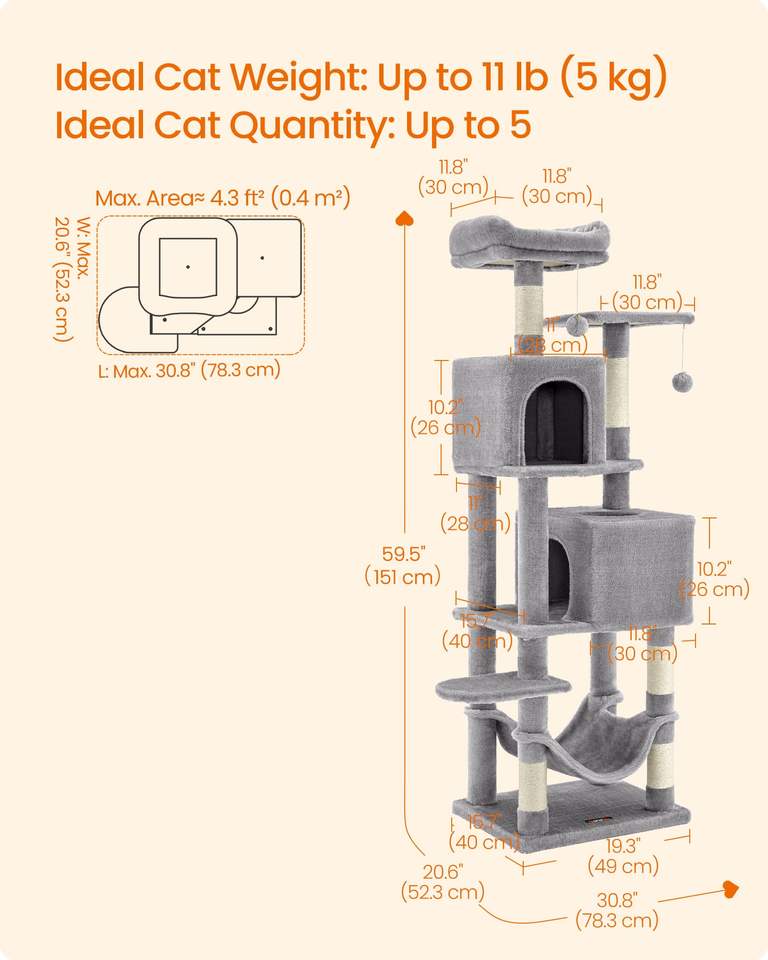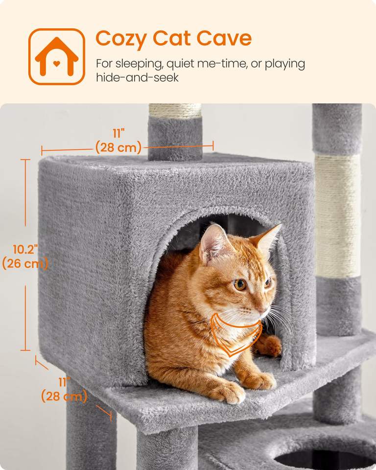 StarMonn Tiragraffi per Gatti, Albero per Gatti da 140 cm, Cuccia Multilivello in Peluche con 4 Tiragraffi, 2 Posizioni di Riposo, Amaca, Grotta