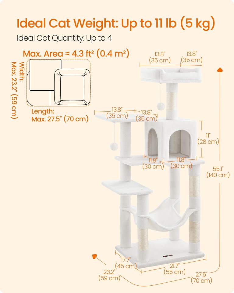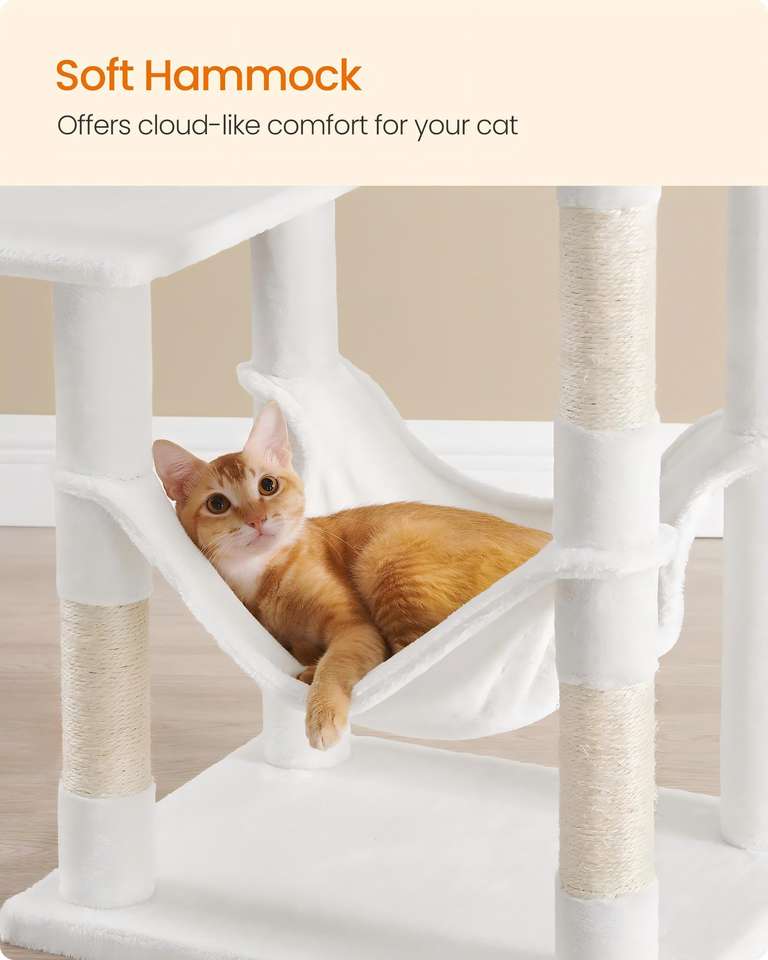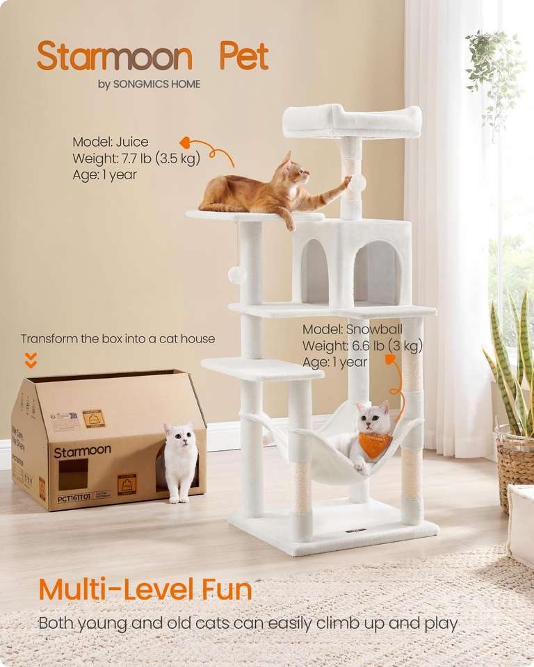 StarMonn Tiragraffi per Gatti in Truciolato, Torre per Gatti, Cuccia Multi-Livello con 4 Tiragraffi, Amaca per Gatti