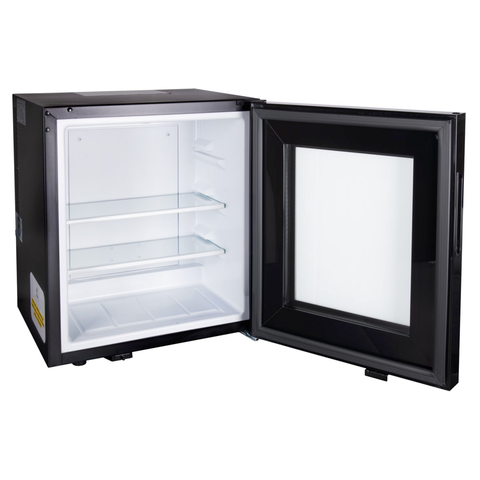 Frigorifero Minibar Stark E40V Classe Hotel, Nero, Porta in Vetro, 40 Litri, Raffreddamento ad Aria, Spina UK, Luce LED, Installazione Portatile, Congelatore