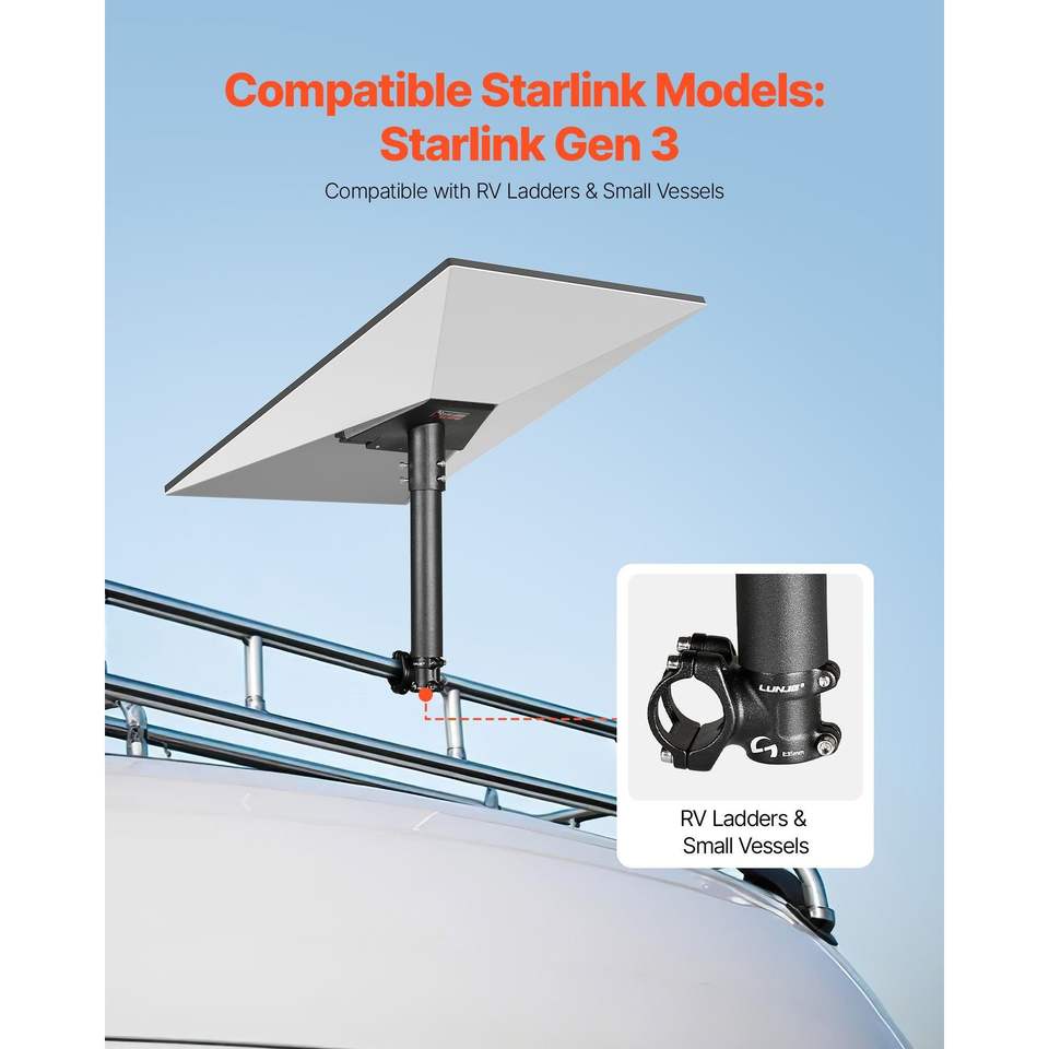 Kit di Montaggio Starlink per Camper in Acciaio Resistente con Angolo Regolabile a 360 Gradi, Tubo Extra Corto Gen 3 con Starlink Extra Corto