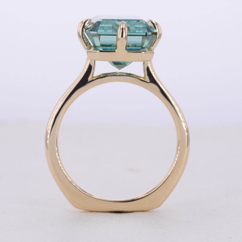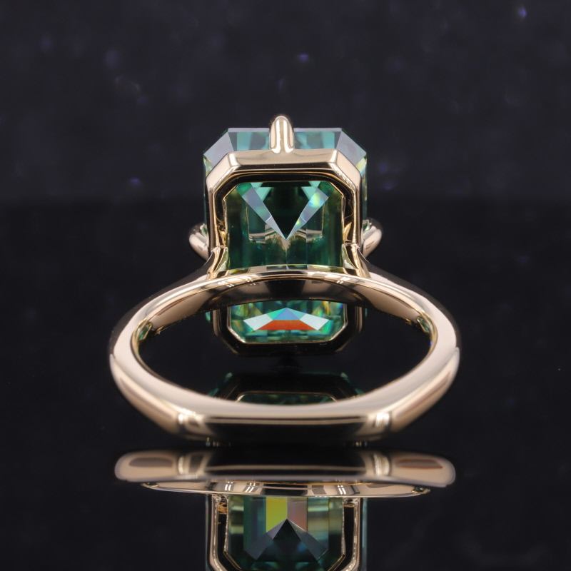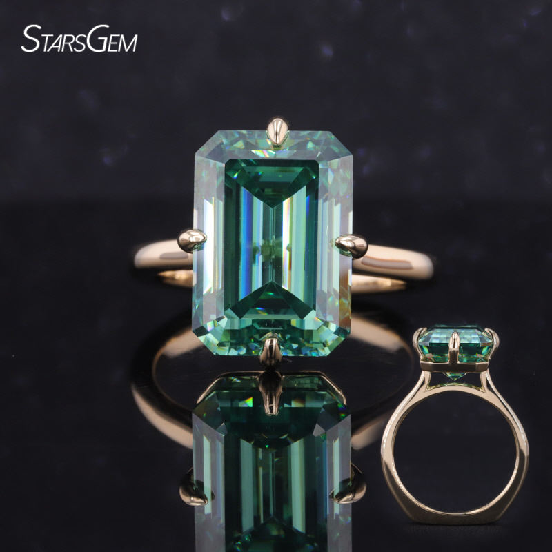 Anello di Fidanzamento Starsgem in Oro Giallo 10K con Moissanite Verde Taglio Smeraldo da 10 Carati Stile Solitario