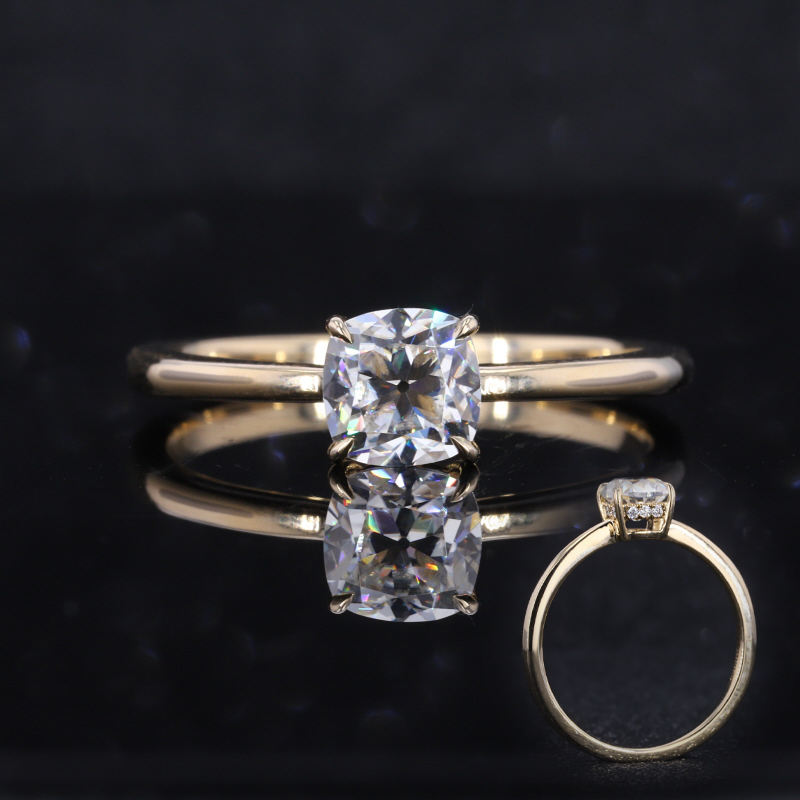 Starsgem fine jewelry 14k solid gold cushion cut moissanite center stone solitarie ring per fidanzamento
