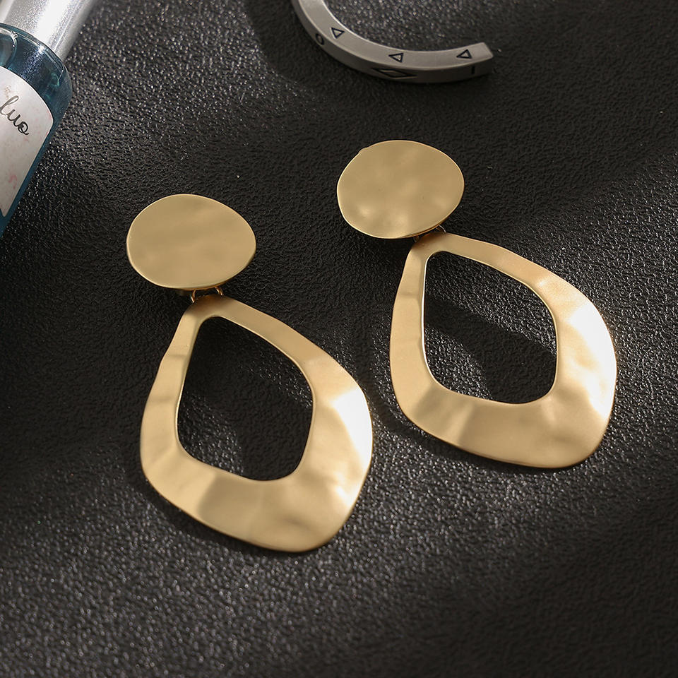 Orecchini Pendenti Dorati Geometrici Irregolari, Orecchini a Goccia Cavi, Gioielli in Metallo Astratti Minimalisti Moderni per Donne