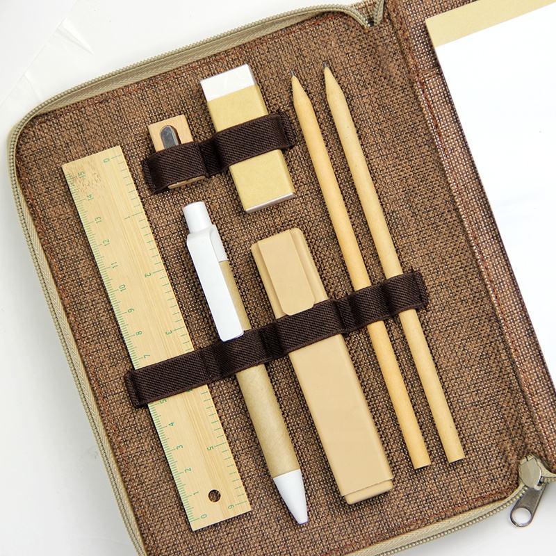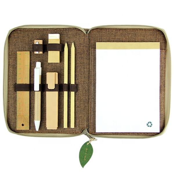 Componenti:Portafoglio con cerniera, blocco note e cancelleria