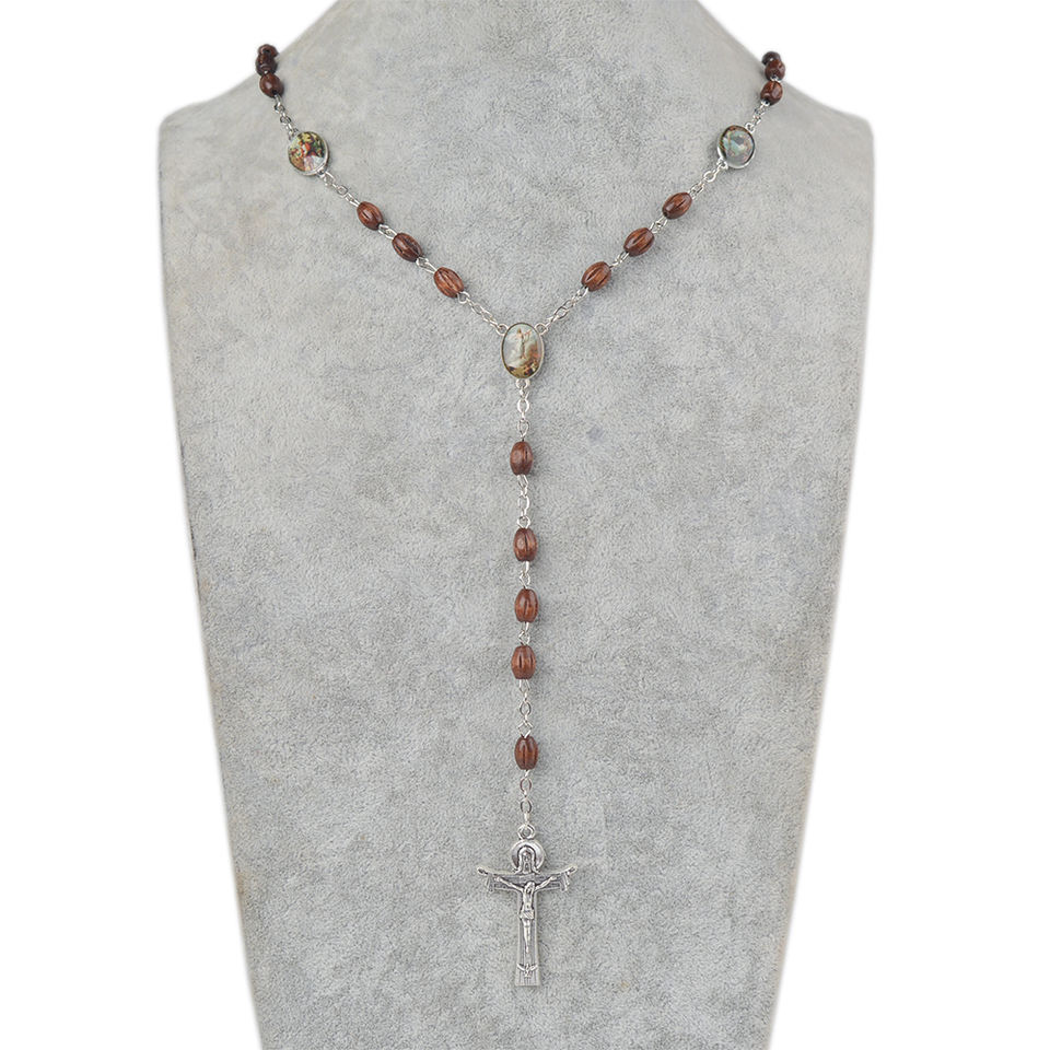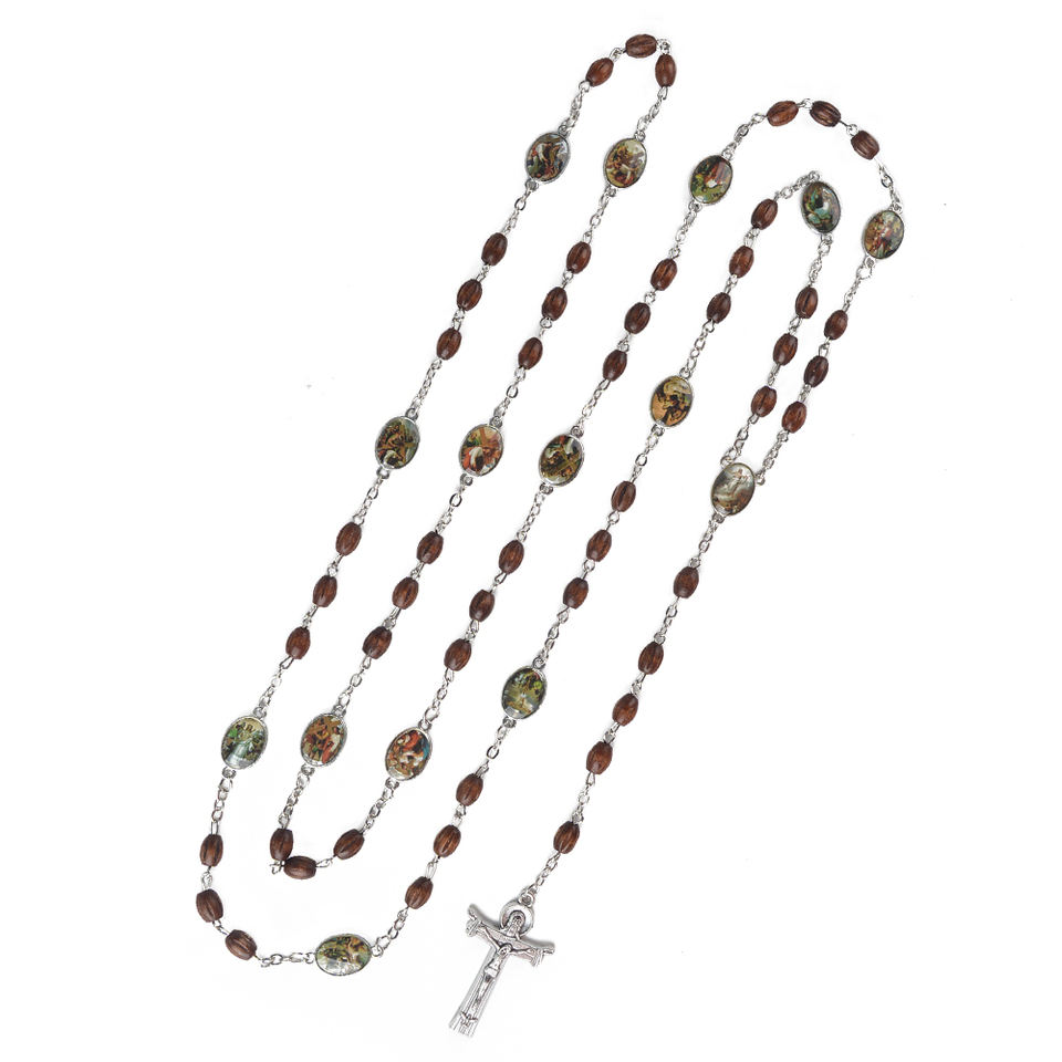 Stations of the Cross Rosary Handmade Wooden Beads Catholic Rosaries Cross Necklace