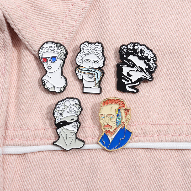 Spille per il risvolto con volti di statue, personaggi astratti artistici, ritratti classici greci, distintivi vintage retrò, accessori di gioielleria