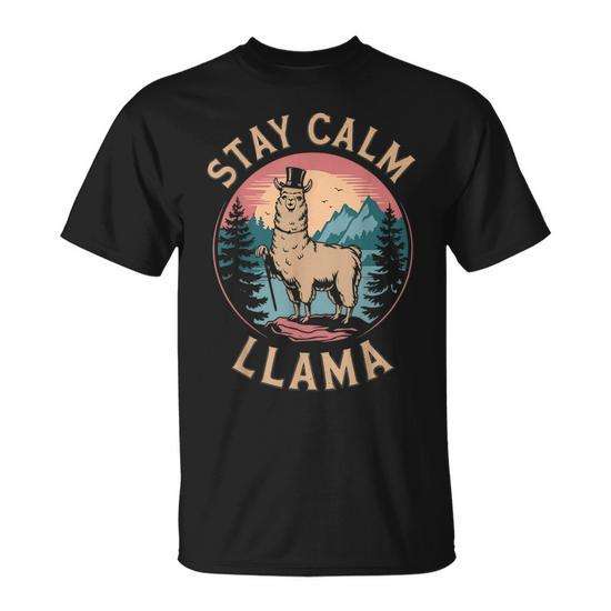 T-shirt retrò da escursionismo in montagna con alpaca e lama, abbigliamento promozionale vintage