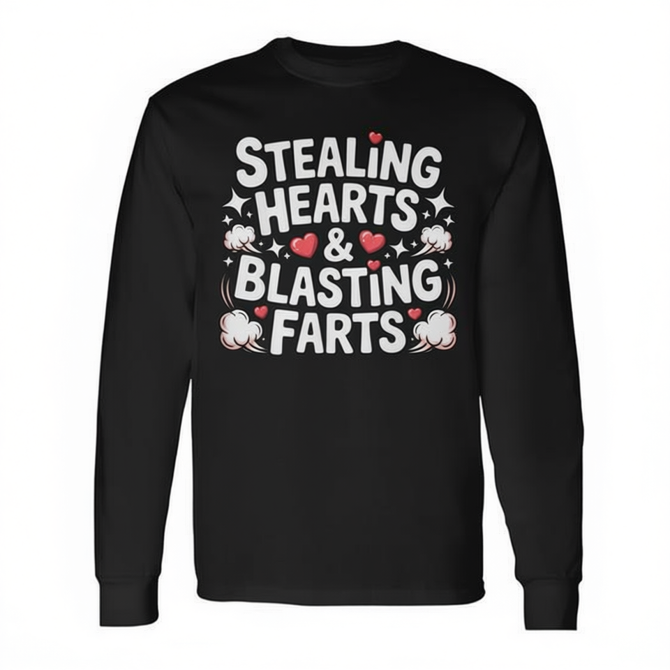 T-shirt a maniche lunghe con stampa 'Stealing Hearts And Blasting Farts', regalo divertente per San Valentino