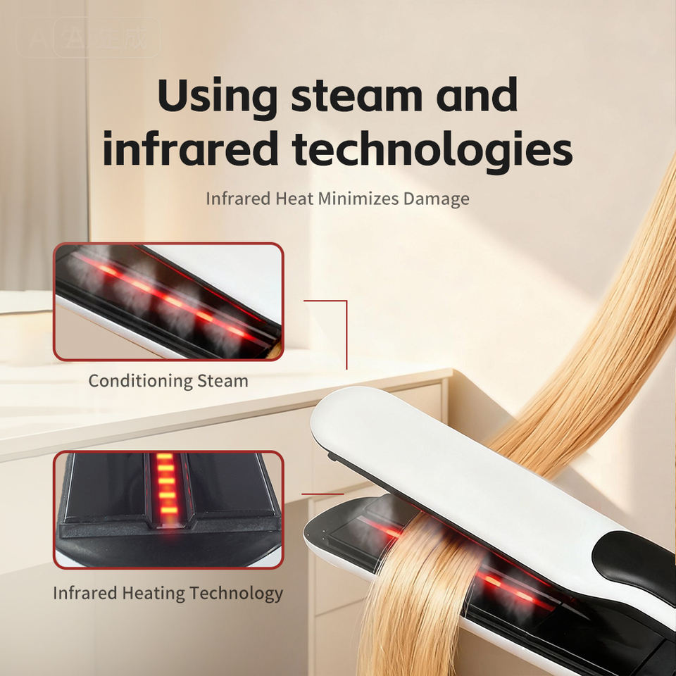 Steam Hair Straightener with Infrared Tourmaline Ceramic Plates Fast Heating Adjustable Temperature Nourishes Hair Professional