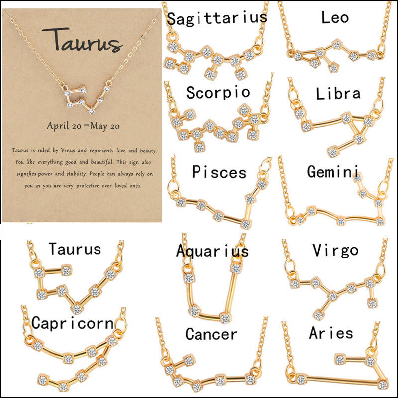 Catena in acciaio Custom 18 pollici 12 segni zodiacali nero lega a goccia oroscopo oro catene d'argento collane