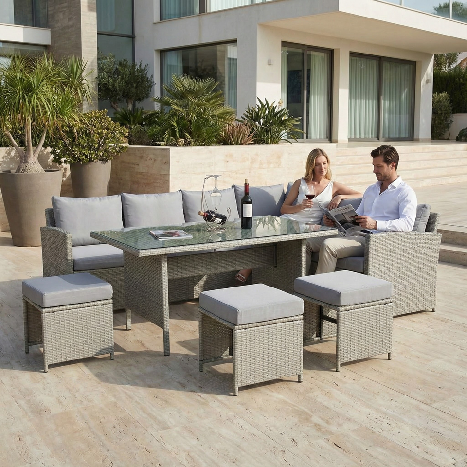 Set Divano da Esterno con Struttura in Acciaio e Rattan PE, Mobili da Giardino con Tavolino e Sgabelli