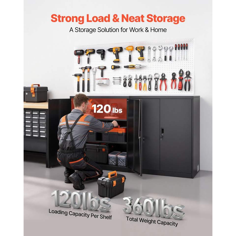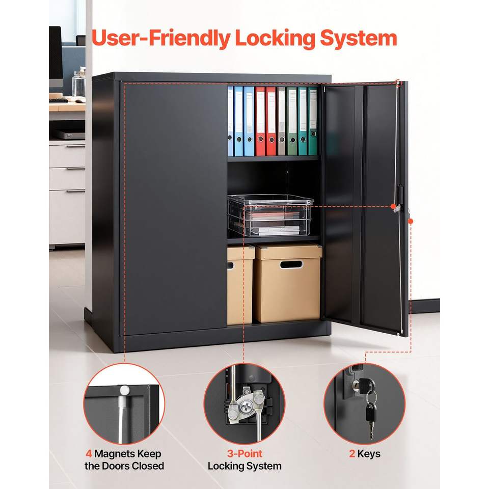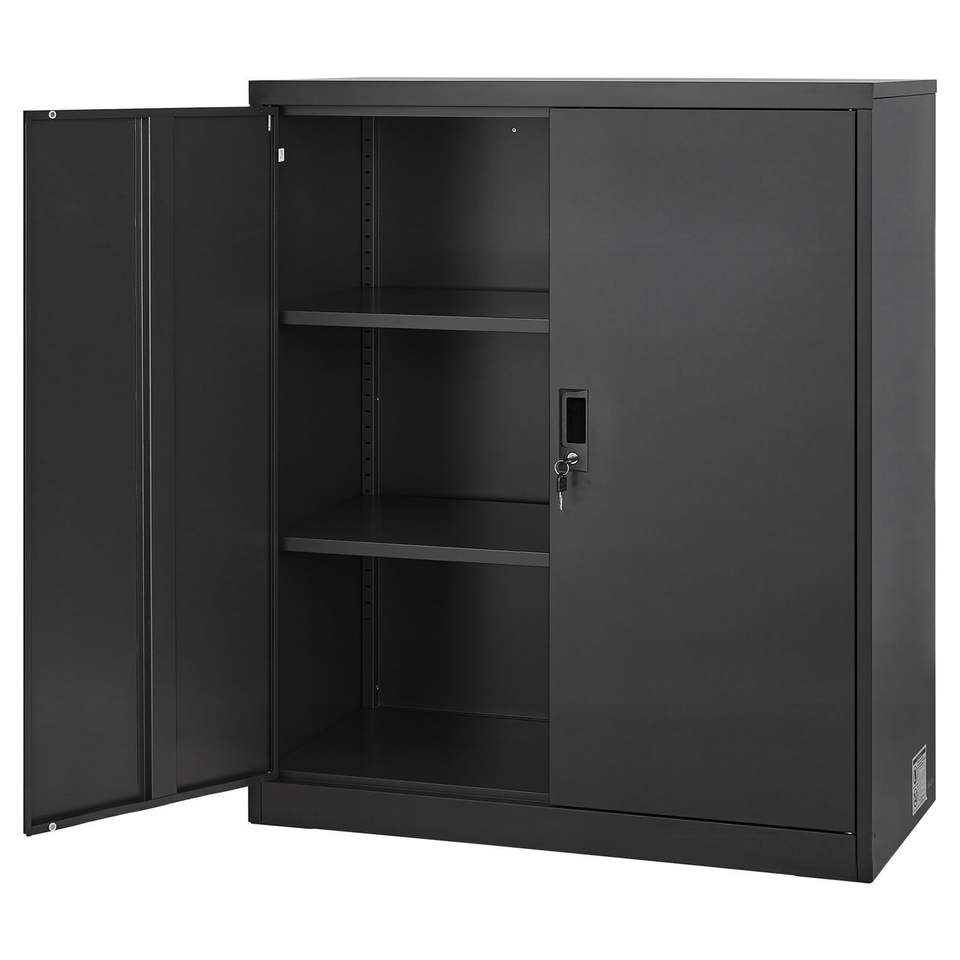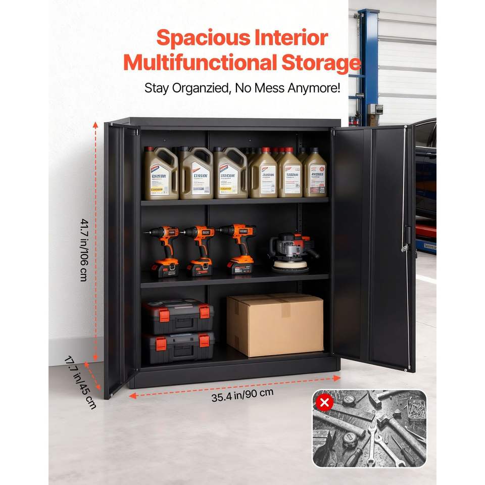 Armadio da Garage in Acciaio 41,7 Pollici, Contenitore Metallico con 3 Ripiani, 2 Mensole Regolabili, 2 Porte Magnetiche, 2 Chiavi, Chiudibile a Chiave