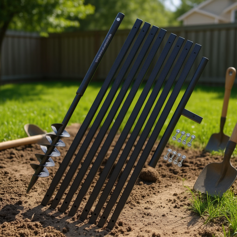 Manico per trivella da terra in acciaio con tubo di prolunga da 3,94 pollici, trivella manuale per fori da 29,6 pollici, asta nera, punta da 6 pollici, 10 cm