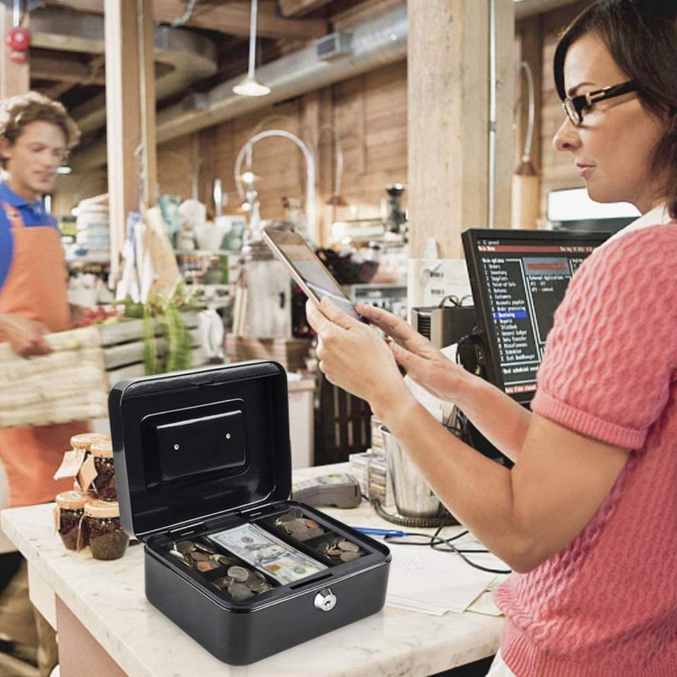 Steel Home Safety Security Safe with Tray Fingerprint & Key Lock for Money Books & Cash