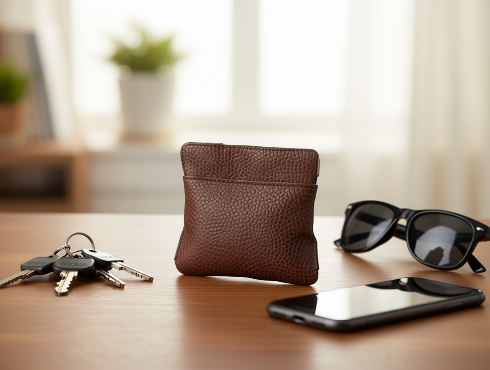 Portamonete in lamiera d'acciaio con motivo litchi, mini portafoglio unisex con chiusura a cerniera