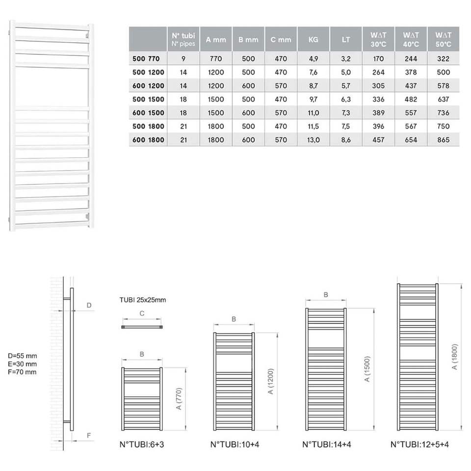 Scalda asciugamani modello quadrato in acciaio con tubi quadrati 470x500x1800mm dimensioni per il bagno