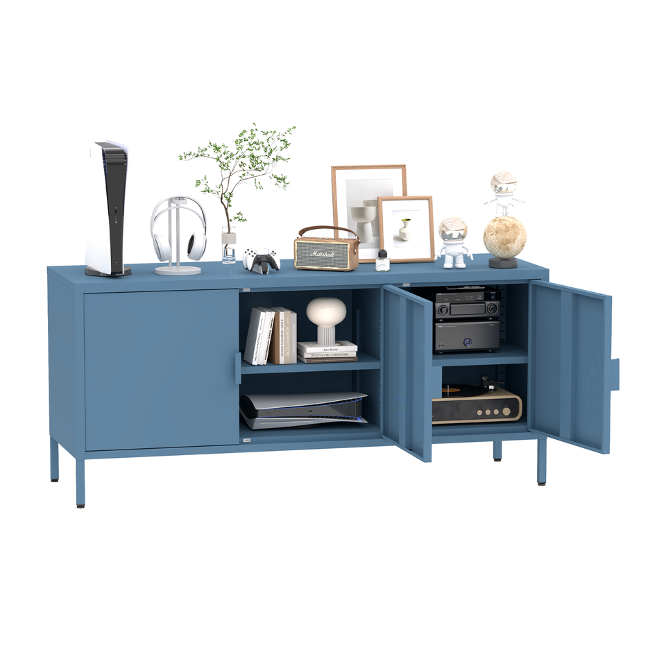 Steel TV Cabinet Living Room Metal 3 Door Media Storage Sideboard Unit for Modern Living Room Entertainment