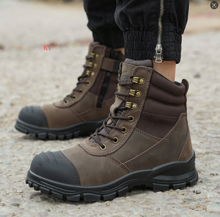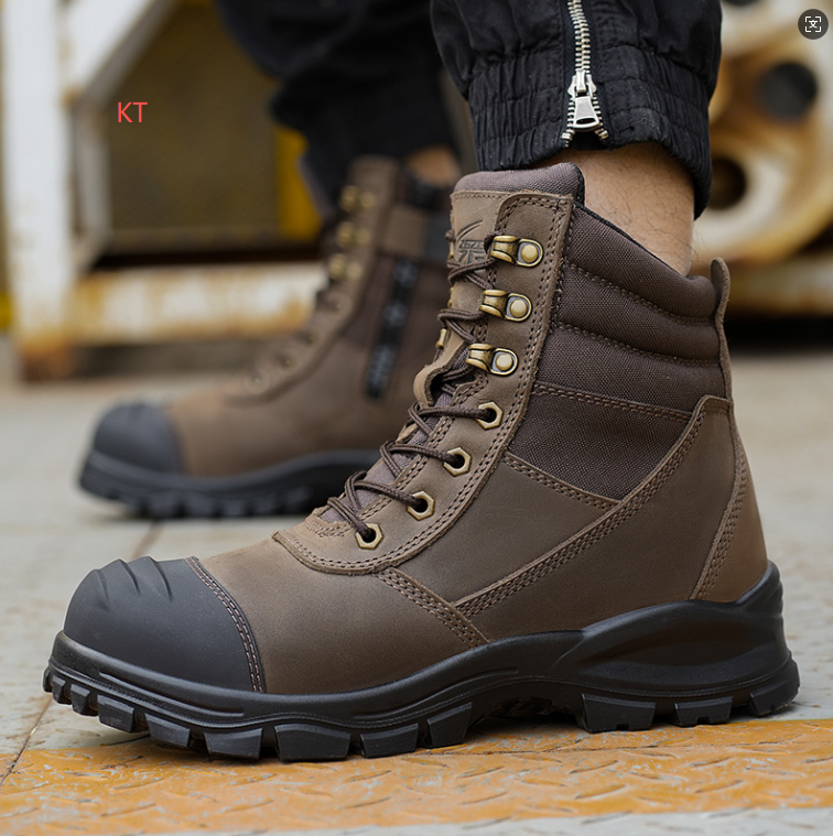 Stivali di sicurezza con punta in acciaio per indossare comodamente cavalli pazzi marroni e pelle di Nubuck gialla con stivali da lavoro di sicurezza con cerniera
