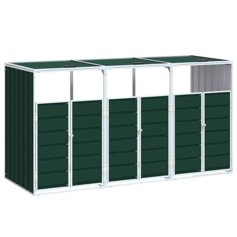 Steel Wheelie Bin Storage for Triple Bins Green 85"x31.9"x45.3" Product Category Sheds & Storage