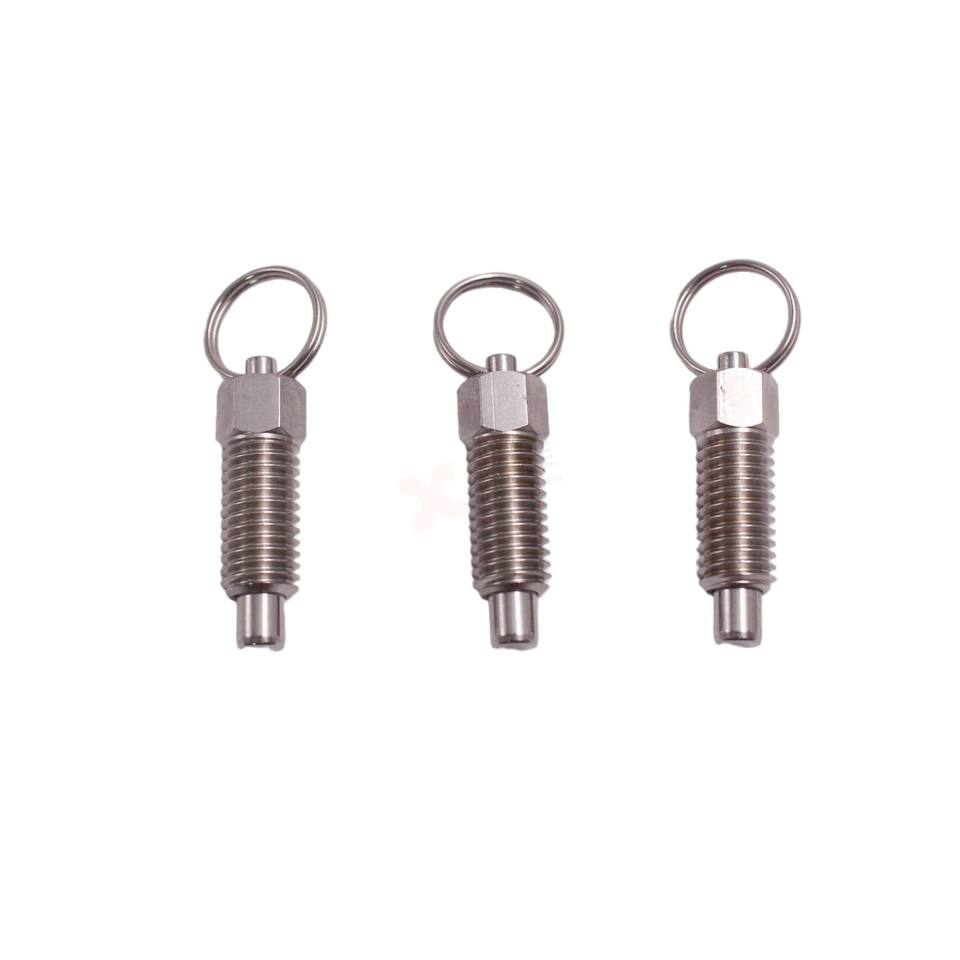 Perni a Molla con Blocco a Sfera in Acciaio Zincato, Perni a Molla Corti in Plastica con Anello di Trazione