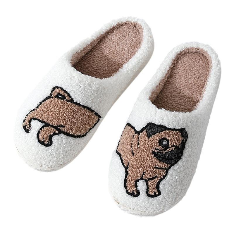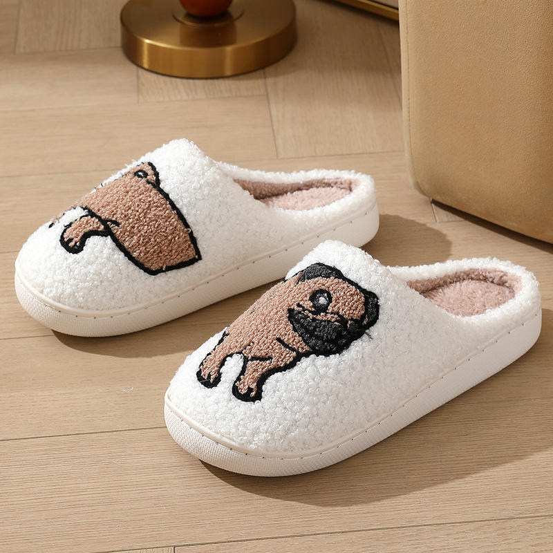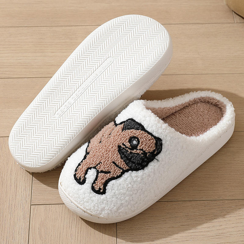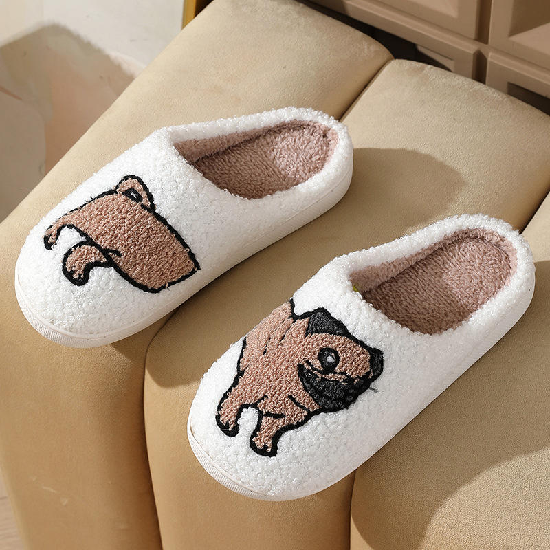 StepGrace Wholesale Custom Animal Embroidery Cute Fluffy Fuzzy Slippers Dog Cat Plush Home Slides Ladies Winter Indoor Slipper