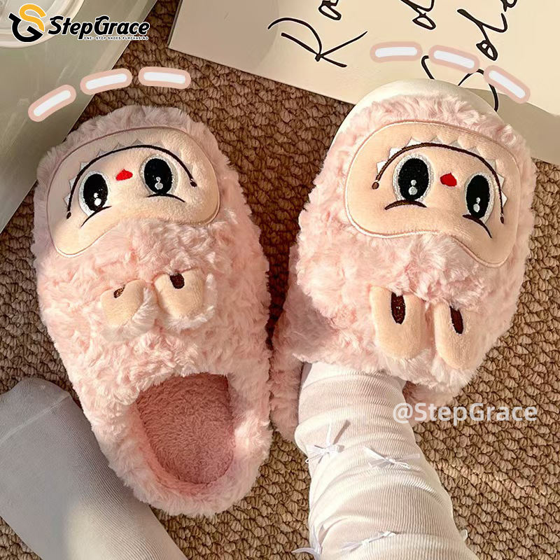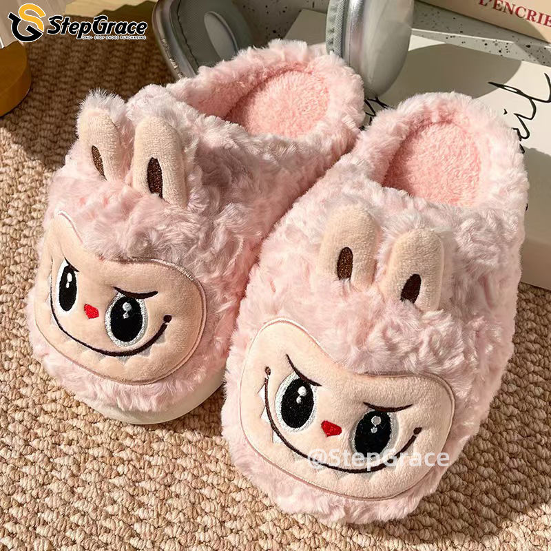 StepGrace Wholesale Winter Thickened Warm Labubu Slippers Indoor Home Non-slip Wrap Toe Fluffy Slippers for Women