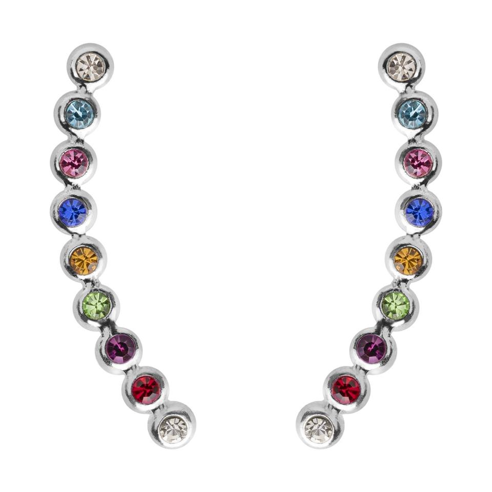 Orecchini alla Moda in Argento Sterling Ipoallergenico con 9 Pietre di Zirconia Cubica Colorata Stile Rampicante 30x4mm