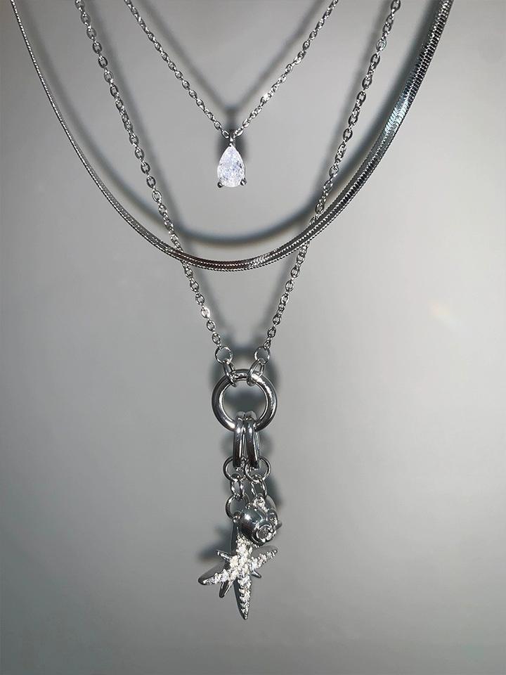 Collana Vintage con ciondolo a forma di stella a otto punte con cuore a forma di stella placcata in platino placcato argento Sterling alla moda