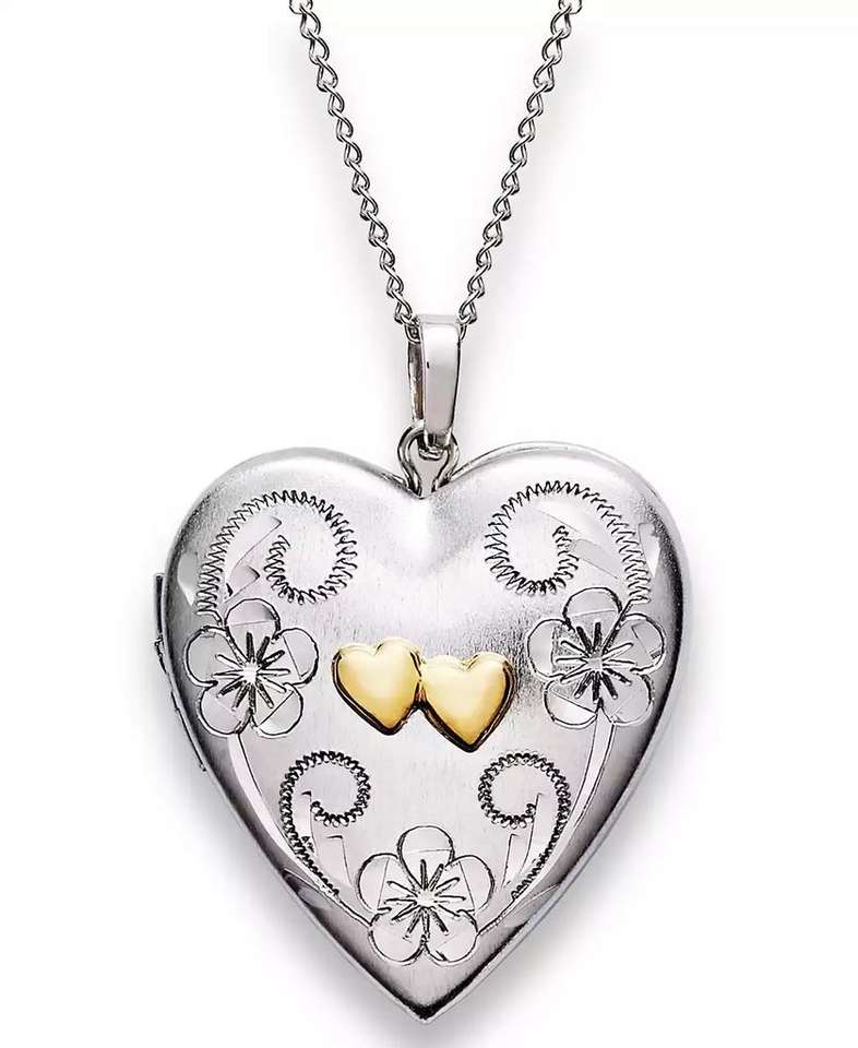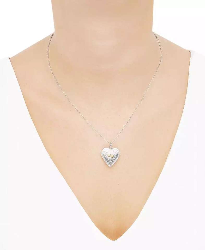 Sterling Silver and 14k Gold Necklace, Heart Locket Pendant 18" | Macy's