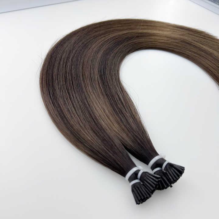 Stick I Tip Pre ribalted Bonding individuale Remy extension capelli umani Full end Balayage marrone dimensionale Blending