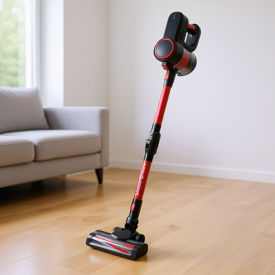 Aspirapolvere Senza Fili 100W con Motore Brushless, Pieghevole 26 Pollici, Filtro HEPA Ciclonico, Luce LED, Strumento di Pulizia Domestica 4-in-1