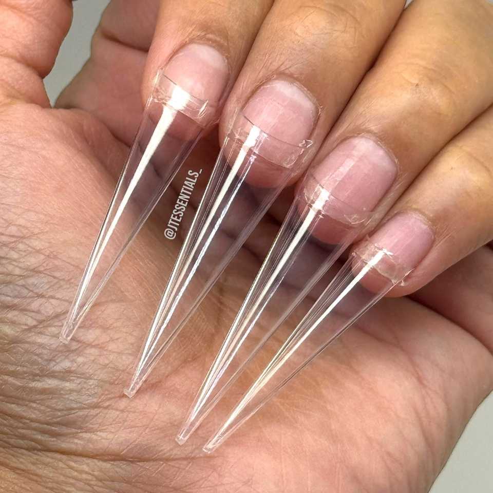 Confezione di 500 Unghie Finte Stiletto-XL XXL, Lunghe e Affusolate, Quadrate, Semi-Coprenti, con Colla, 10 Pezzi Dritti, Prodotti per Nail Art