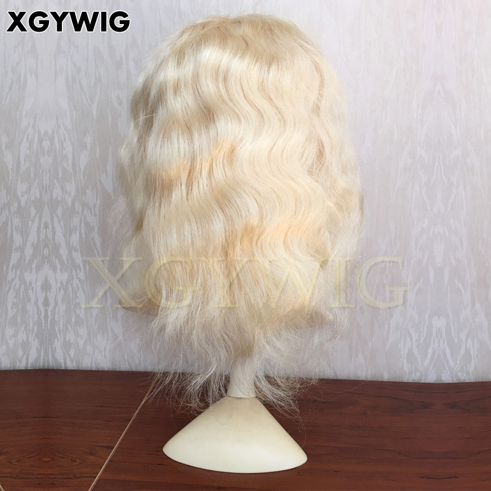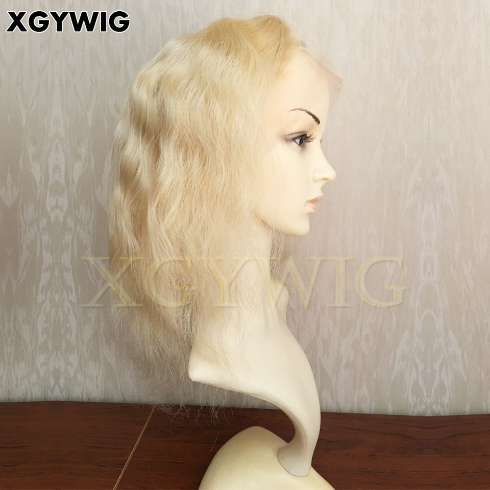 100% di scorta capelli umani brasiliani vergini Remy 14 "613 di colore # corpo corto onda senza colla 13x4 parrucche di pizzo anteriore biondo platino